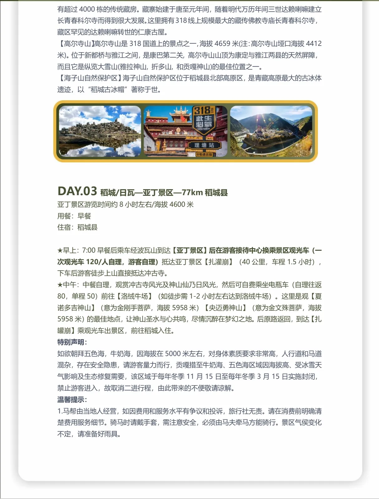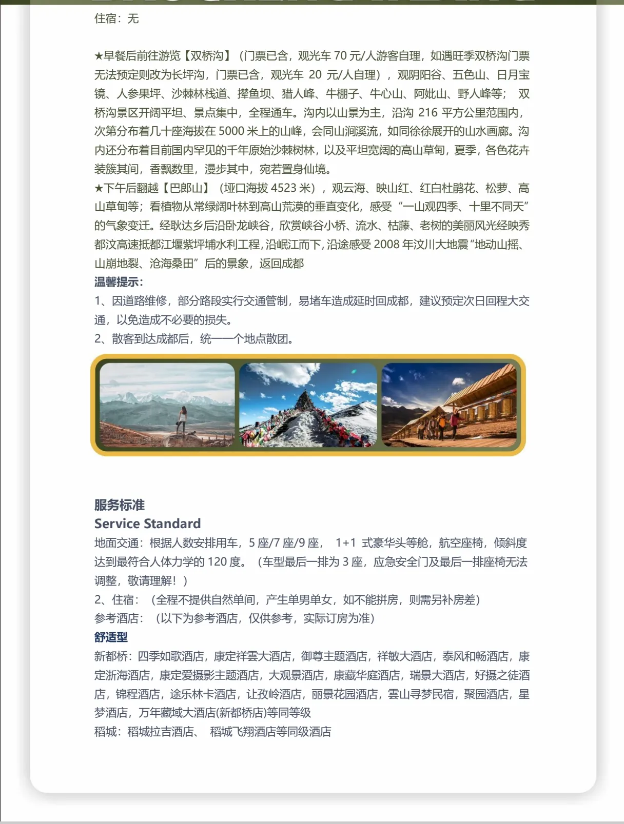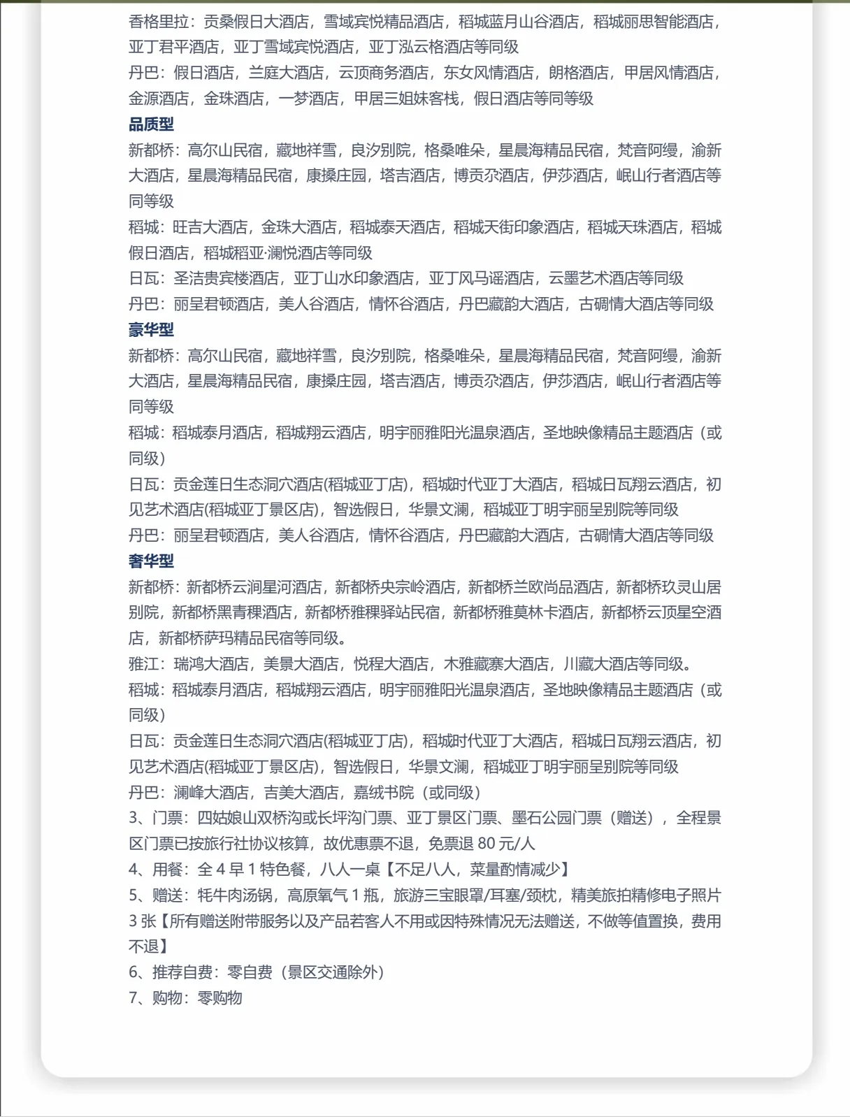 📞 贴心升级:24小时管家全天候守候,稻城一晚特设“有氧房”,更有旅行三宝、高原便利氧气、专车接送,无忧旅途触手可及。